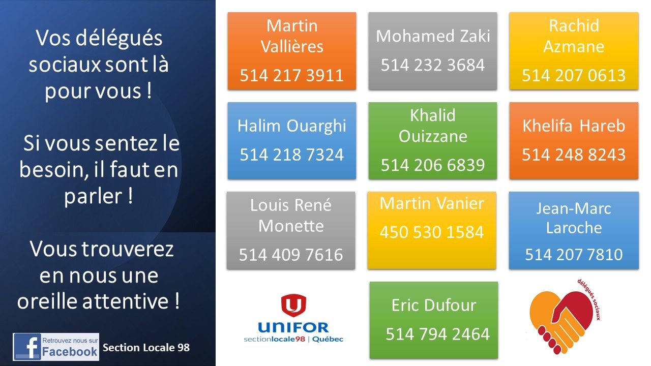 Le rôle de délégués sociaux est qu'ils s’assureront que leurs membres puissent bénéficier du support recherché et ce, en toute confidentialité.